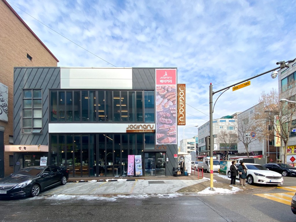 클라이언트는 코너 대지의 작은 카페 건축을 의뢰하였다. 눈에띄는 건물을 원했던 클라이언트의 요구에 따라서, 우리는 코너 대지의 잠재력을 최대화하기 위해서 복잡한 건물이 아닌 단순한 건축 디자인을 제안하였다. 사이트 주변은 다세대 주택, 상가 등으로 매우 복잡한 컨텍스트를 가지고 있었기 때문에 반대로 단순한 매스가 돋보일 수 있는 가능성이 있었다. 단순한 매스와 더불어 우리는 포스트모더니즘 건축풍의 비례를 가지는 입면을 디자인하였다. 이 장소와 사이트에 왜 포스트 모더니즘 건축인가? 정확히 말하자면 포스트 모더니즘 건축에 대한 우리만의 재해석이다. 주변의 복잡한 건물들 사이에서 포스트 모더니즘의 건축기법인 고전건축에서의 비례와 장식을 추상화하였다. 이는 주변 컨텍스트에서 조화로우면서 정돈된 건축을 나타낼 것이다.